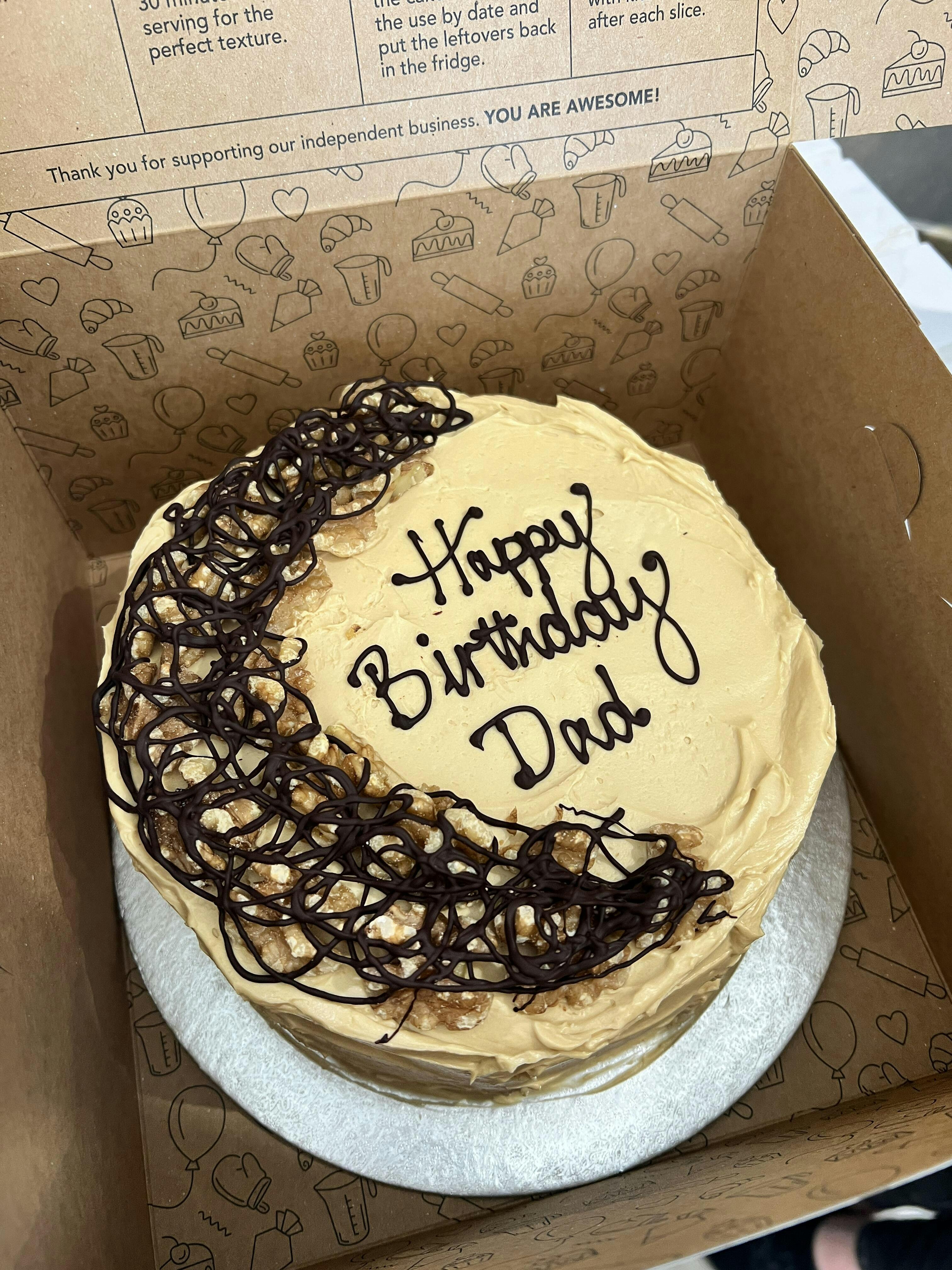 Coffee infused walnut sponge cake is a much loved classic and a real hit with caffeine addicts. This scrumptious personalised cake is covered in delicate buttercream for a delicious finish.