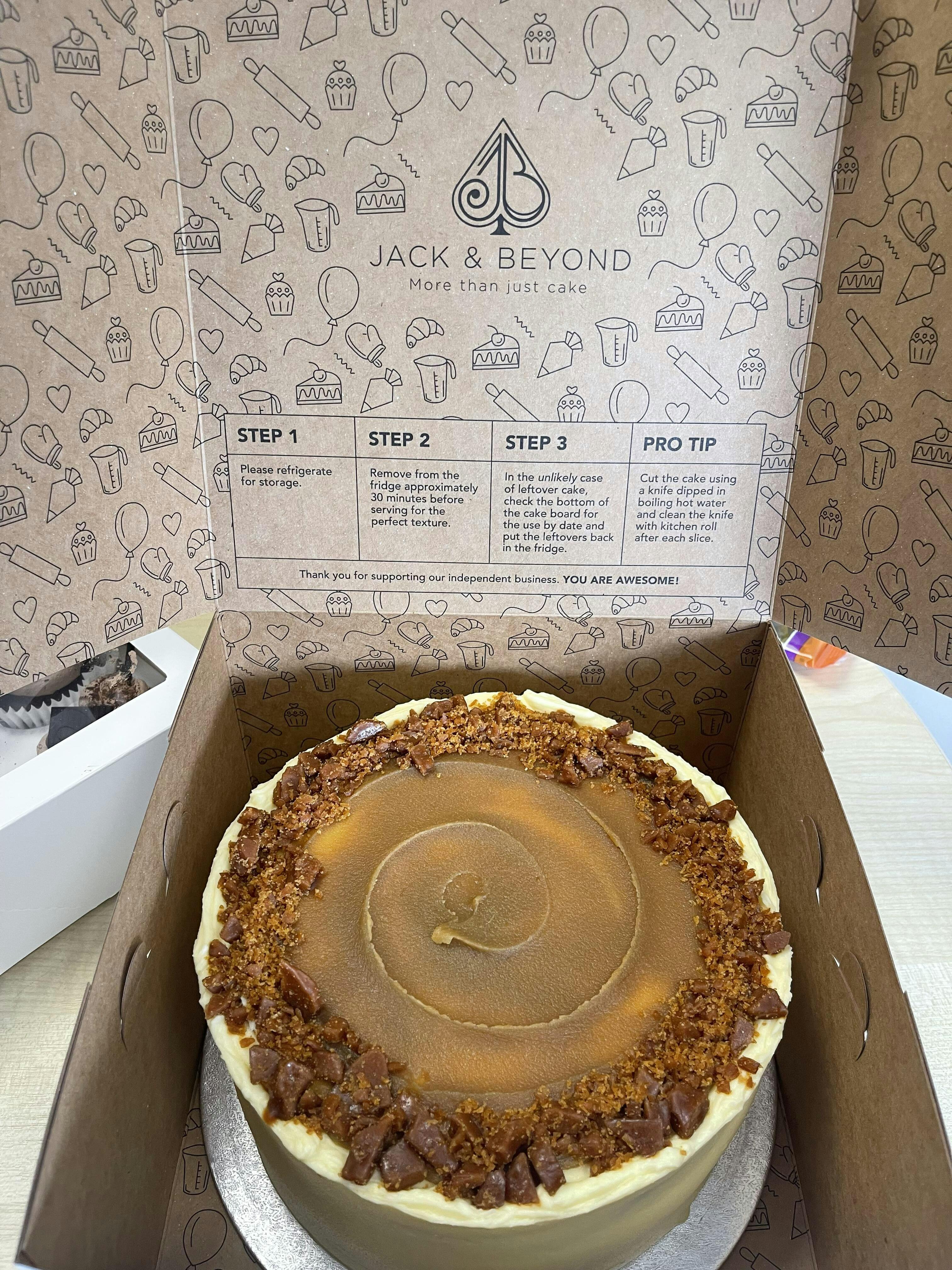 Looking to personalise your Sticky Toffee Pudding Cake with a heartfelt message? Do so here.